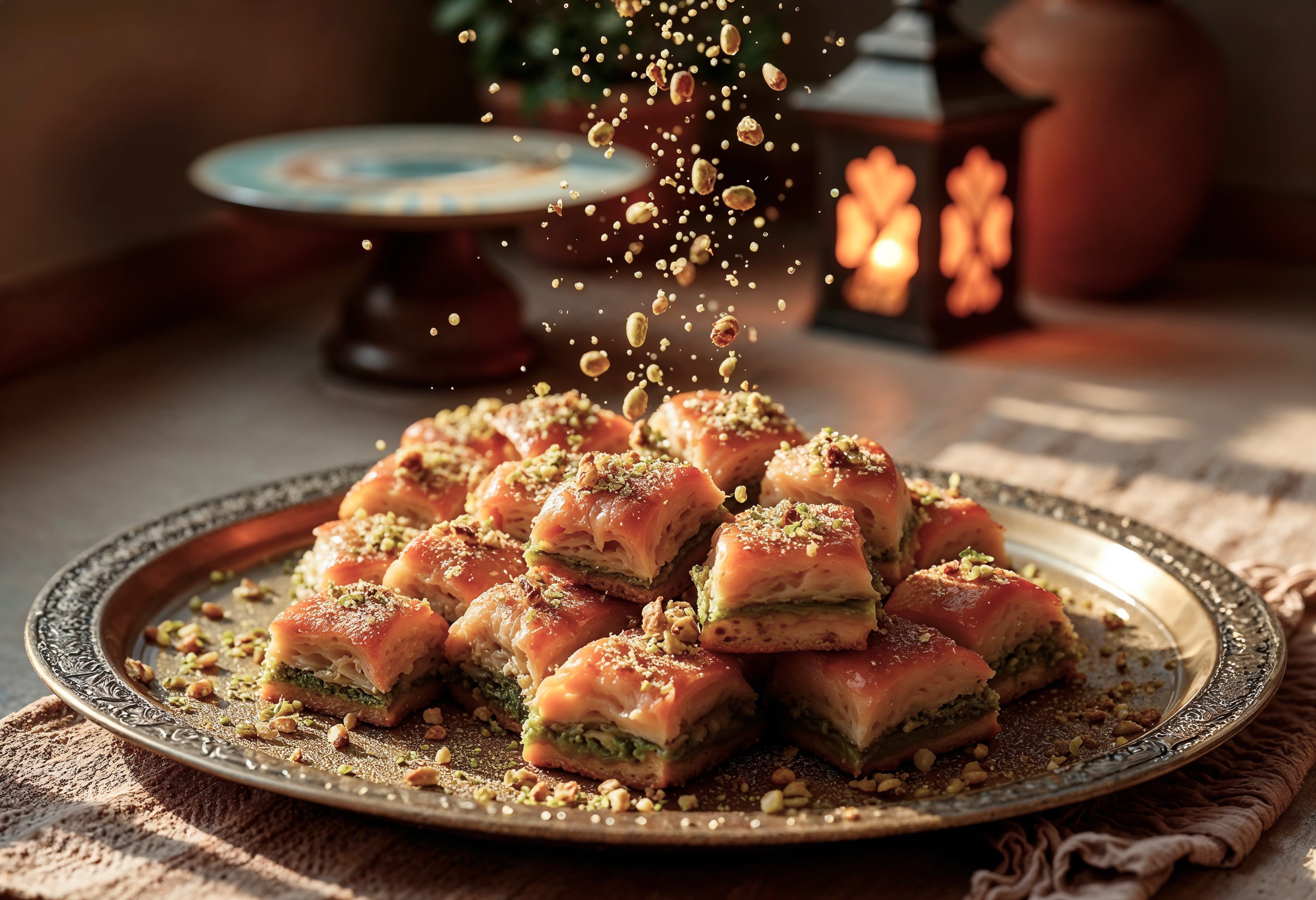 „Alte syrische Süßigkeiten, hergestellt von geschickten Händen, aus den besten Nusssorten und hochwertigem tierischem Reinbutterfett. Green Edlib Konditorei, der bekannteste Name in Berlin für die Herstellung von orientalischen Süßigkeiten, Halavat Aljoben, Kunafa und anderen Artikeln. Das berühmte Shuaibiyat Edlib, das mit der Eröffnung unseres Ladens in der Sonnenallee, bekannt als Arab Street, erstmals auf den deutschen Markt kam. Unsere syrischen Süßigkeiten sind Teil unseres kulturellen syrischen Erbes, auf das wir stolz sind und das wir überallhin mitnehmen. Green Edlib Konditorei – Ein authentischer Geschmack voller Nostalgie."